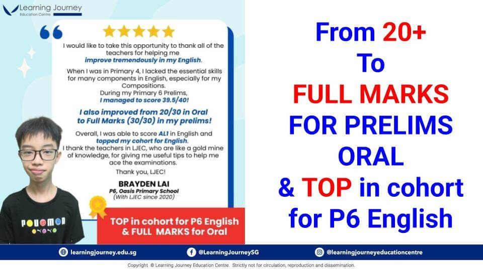 As Singapore’s top-rated PSLE English Oral Preparation Centre, Learning Journey Education Centre specialises in equipping students with the skills they need to ace their oral exams.